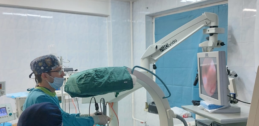 Проведение операции: через трубку хирург вводит эндоскоп — небольшую камеру, которая обеспечивает чёткое изображение внутри позвоночника. С помощью специальных инструментов хирург удаляет проблемные ткани, такие как грыжи межпозвоночных дисков или костные наросты, которые могут давить на нервы и вызывать боль. В отличие от некоторых клиник, которые рекламируют «лазерную операцию на позвоночнике», мы используем комбинацию инструментов, в том числе лазер и ультразвуковую энергию, чтобы точно воздействовать на проблемную область.